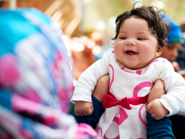 Whos my pretty girl. Shot of a muslim mother and her little baby girl